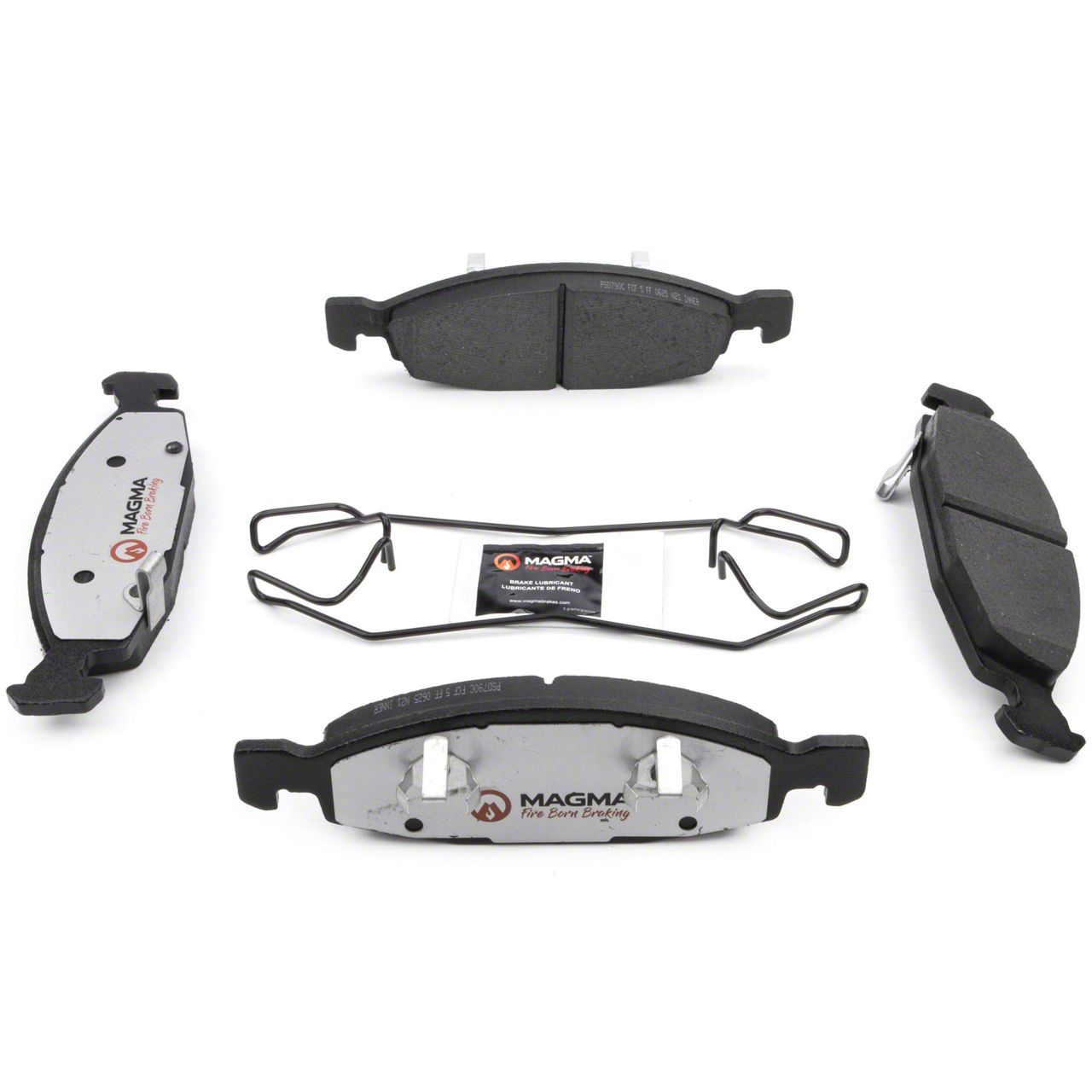WHY MAGMA? - Today's harsh stop and go environment can create very high heat levels in your braking system which can reduce the vehicle's ability to stop. Extreme high temperatures can be reached in many braking situations such as - Stop and Go Traffic, Mountain Driving, Hauling or Towing, Emergency Stops, Spirited Driving and Long, Sustained Braking. At MAGMA Brakes, we use FIRE to fight FIRE. Our brake system components are made using advanced, state of the art techniques and treatments that ensure our brakes will stand up to the heat. MAGMA Pro-Series brake pads feature... 1. Scorched, copper free friction formulations for overall ltimate braking performance 2. Vulcanized OE style rubber core shims for unsurpassed noise suppression 3. Heat-tempered upgraded dual-coated stainless steel hardware kits to restore the brake pad to caliper interface to "like new" condition (where applicable) 4. Heat expansion OE style slots and chamfers to dissipate noise and stand up to the heat 5. High-heat resistant brake lubricant included for lubricating critical points during pad installation