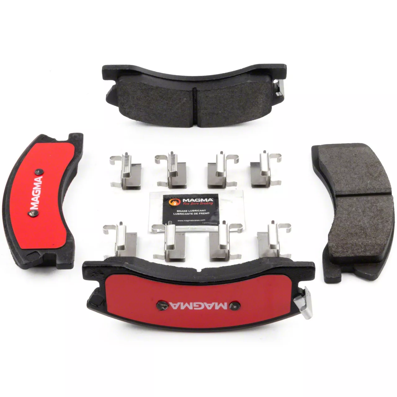 Severe Duty Performance. The Magma Brakes Severe Duty Semi-Metallic Brake Pads; Front Pair deliver robust stopping power designed to withstand the rigors of severe braking conditions. These pads improve vehicle safety and brake system longevity by enduring high temperatures and demanding driving scenarios. Their application is critical in maintaining reliable brake performance in harsh environments.