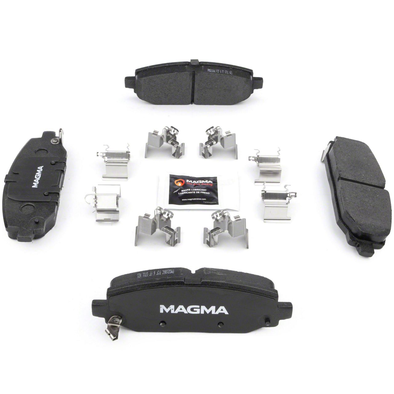 WHY MAGMA? - Today's harsh braking environments can create very high heat levels in your braking system which can reduce the vehicle's ability to stop. Extreme high temperatures can be reached in many braking situations such as - Stop and Go Traffic, Mountain Driving, Hauling or Towing, Emergency Stops, Spirited Driving and Long, Sustained Braking. At MAGMA Brakes, we use FIRE to fight FIRE. Our brake system components are made using advanced, state of the art techniques and treatments that ensure our brakes will stand up to the heat. MAGMA Premium brake pads feature... 1. Scorched, copper-free friction formulations for optimal stopping power 2. Heat-treated rubberized multi-layer shims for superior noise dampening 3. Heat-tempered stainless steel hardware kits to restore the brake pad to caliper interface (where applicable) 4. High-heat resistant brake lubricant included for lubricating critical points during pad installation