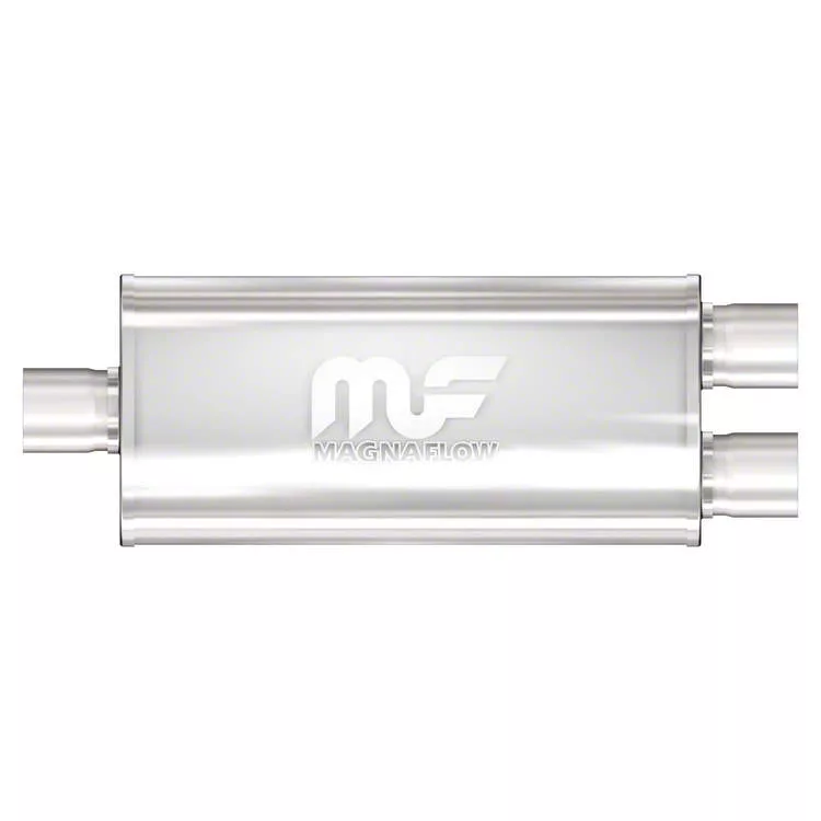 Sound and Performance. The Magnaflow 5x8-Inch Oval Center/Dual Straight-Through Performance Muffler is a high-quality aftermarket muffler designed for improved performance and sound. This muffler features a center inlet of 3 inches and a 2.50-inch outlet. This muffler is easy to install and includes all the necessary hardware for a hassle-free fitting.