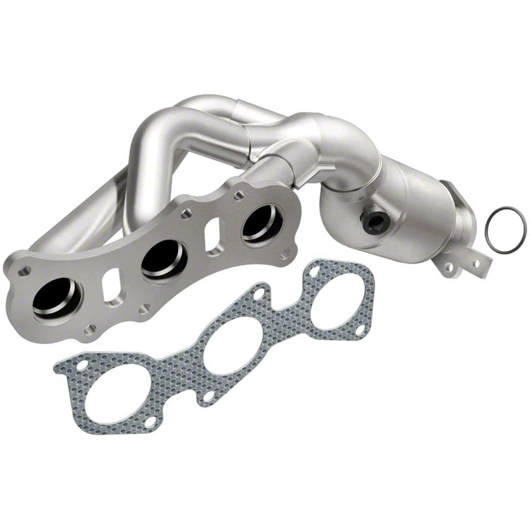 High Quality Structure. The Magnaflow Direct-Fit Exhaust Manifold is a high-quality and efficient solution for your vehicle's exhaust system needs. This manifold is equipped with a built-in catalytic converter, ensuring that your vehicle complies with emission standards while optimizing exhaust flow for improved performance. Designed for passenger side placement, it seamlessly integrates into your vehicle's exhaust system. Crafted from stainless steel, this manifold is built to withstand the rigors of daily driving and exposure to exhaust gases. With a 1.5-inch primary diameter, it efficiently channels exhaust gases, reducing backpressure and enhancing overall engine efficiency.