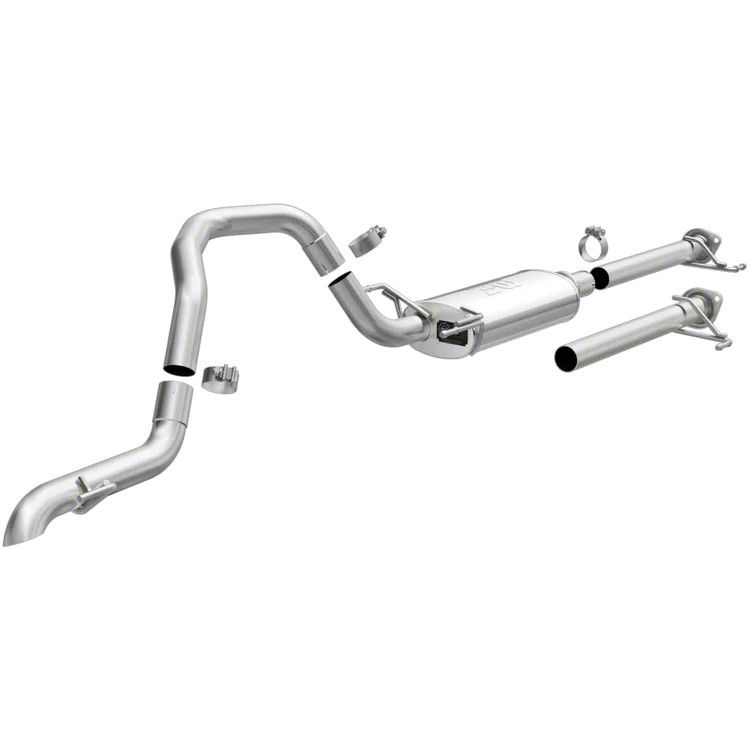 Friendly Tone. Crafted from high-class stainless steel, the Magnaflow Overland Series Cat-Back Exhaust’s main pipe construction offers exceptional durability and corrosion resistance, guaranteeing long-lasting performance. The Magnaflow Overland Series Cat-Back Exhaust not only enhances your vehicle's sound output with a friendly tone but also eliminates drones for a pleasant driving experience.