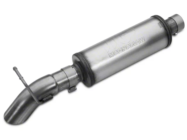 Design. The MagnaFlow Off Road Pro Series Cat-back Exhaust System includes a 5x14 muffler and 2.5-inch tubing. The tube's turndown before the axle design produces an aggressive tone and lets you use it on jeeps with modified suspension and configuration.