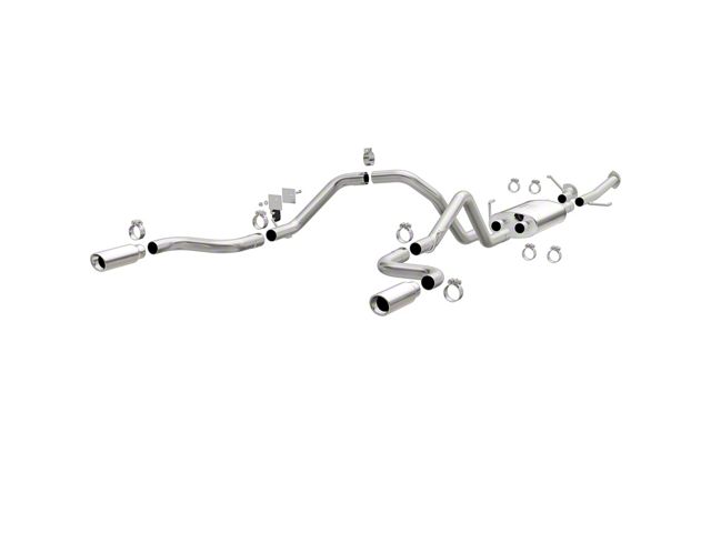 Heavy-Duty Build Quality. The Magnaflow Street Series Rear Exit Dual Exhaust System is constructed from heavy-duty, 409 stainless steel for maximum corrosion resistance. This cat-back exhaust uses 2.50-inch wide piping that’s mandrel-bent, ensuring maximum rigidity, and eliminating turbulence spots. Additionally, this exhaust uses highly-polished exhaust tips that feature a slant cut, and rolled edge design for great looks.