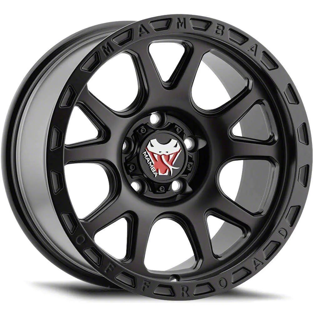 Mamba Offroad Wheels Type M27 Matte Black 6-Lug Wheel; 18x9; -12mm Offset offers a striking balance between style and durability. The design speaks to the brand's commitment to quality, enhancing the vehicle's appearance with its distinct look. This wheel, with its unique aesthetics, is ideal for drivers who appreciate a blend of modern design and robust functionality.