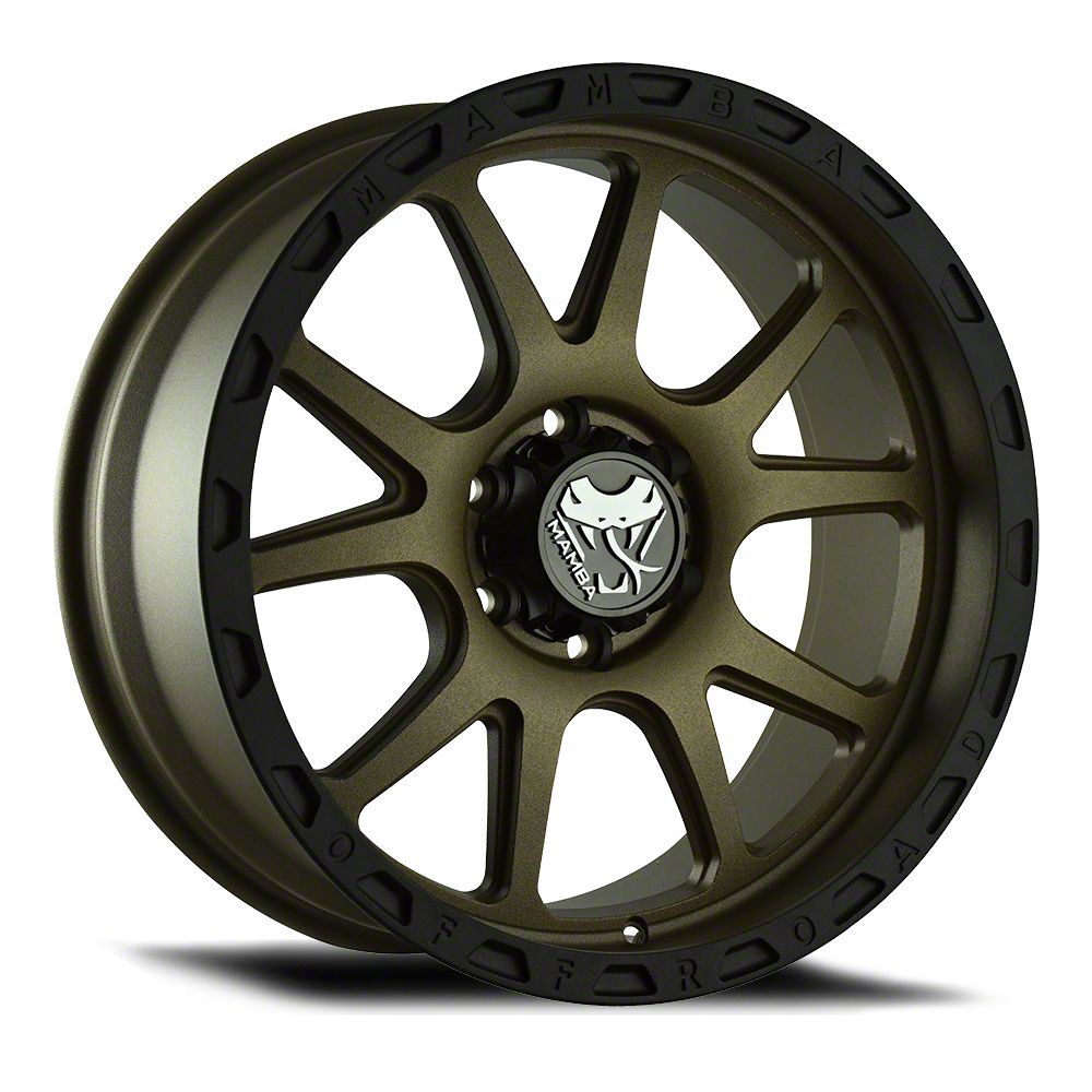 Application. This Mamba Offroad Wheels Type M27 Matte Bronze with Black Lip 6-Lug Wheel; 20x9, with a backspace of 5 Inch, 127mm and a bolt pattern of 6 x 139.7mm (6 x 5.5-Inch), is designed to enhance alignment and driving stability. It's specially designed to fit the 2021-2026 Bronco Excluding Raptor models, sold individually.