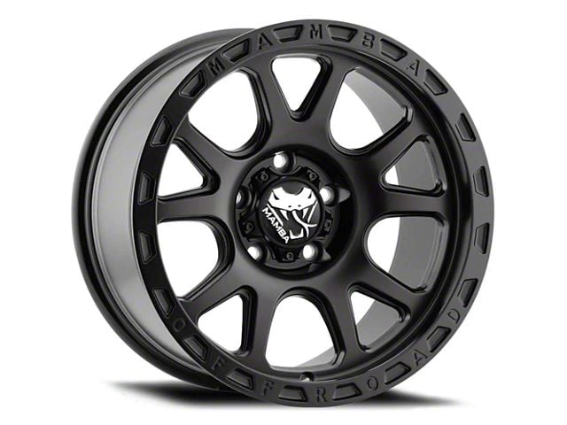 The 17x9 Mamba Offroad Wheels Type M27 Matte Black Wheel; 17x9 is completed in a high-quality matte black finish that will make others green with envy. For added protection and good looks, this wheel features a durable clear coat that can withstand the hazards of daily driving.