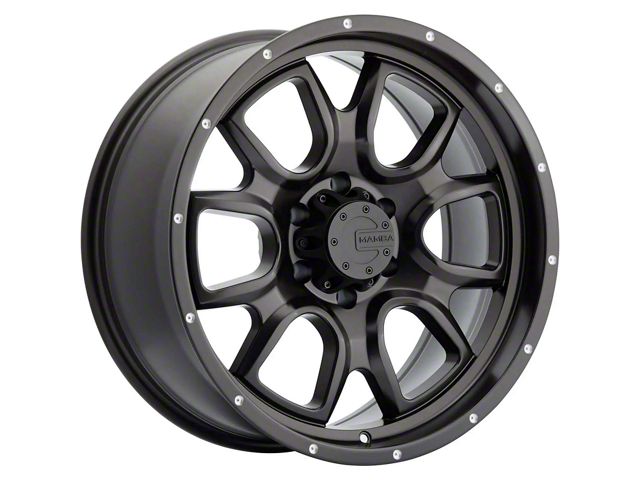 Mamba Offroad Wheels Type M19 Matte Black Wheel; 17x9. The Mamba Offroad Wheels Type M19 Matte Black Wheel; 17x9 features a sleek and modern design that enhances the overall aesthetic of any vehicle. Its brushed gunmetal finish adds a touch of sophistication and complements various vehicle styles. This wheel's premium construction ensures durability and a robust appearance.