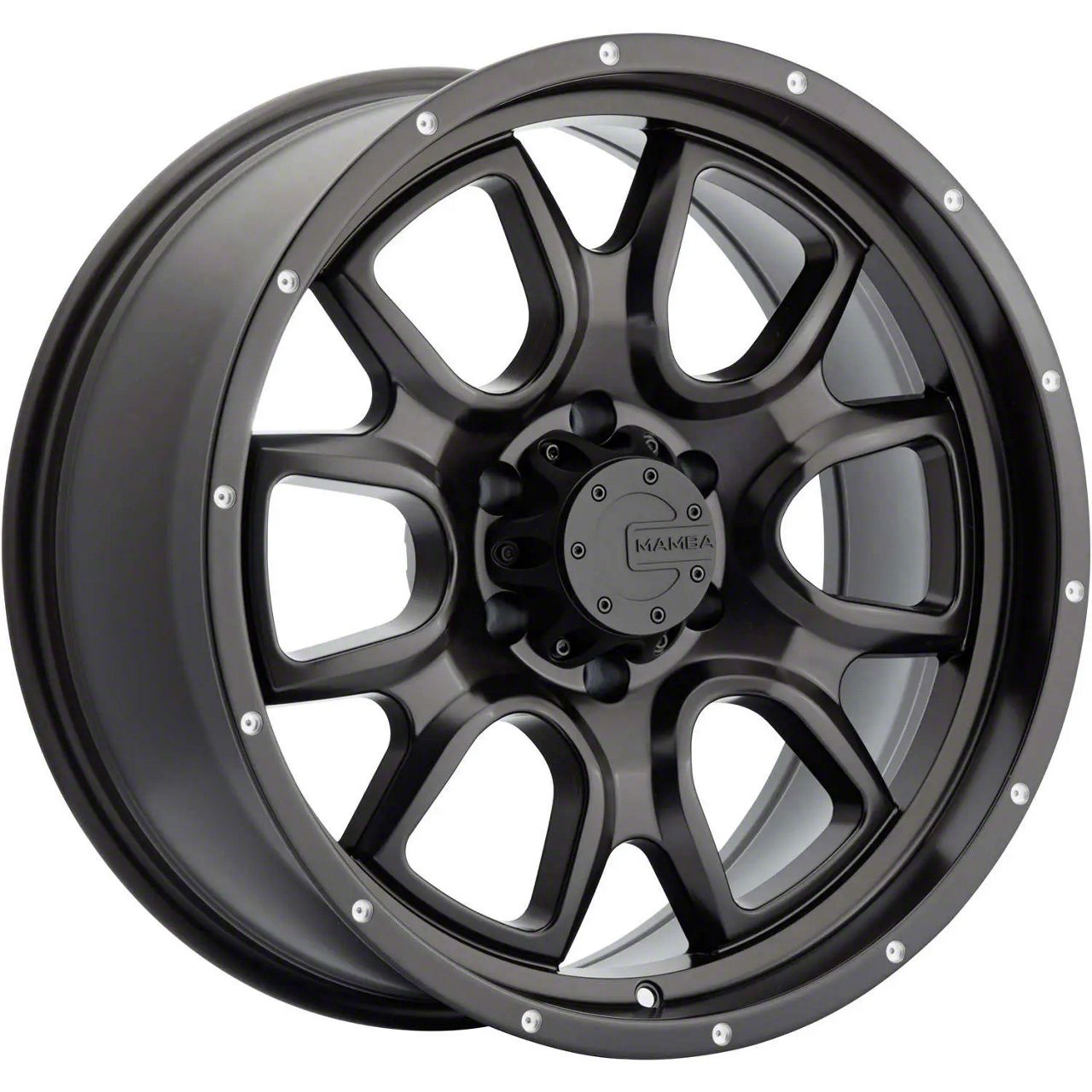 Mamba Offroad Wheels Type M19 Matte Black Wheel; 18x9. The Mamba Offroad Wheels Type M19 Matte Black Wheel; 18x9 features a sleek and modern design that enhances the overall aesthetic of any vehicle. Its brushed gunmetal finish adds a touch of sophistication and complements various vehicle styles. This wheel's premium construction ensures durability and a robust appearance.