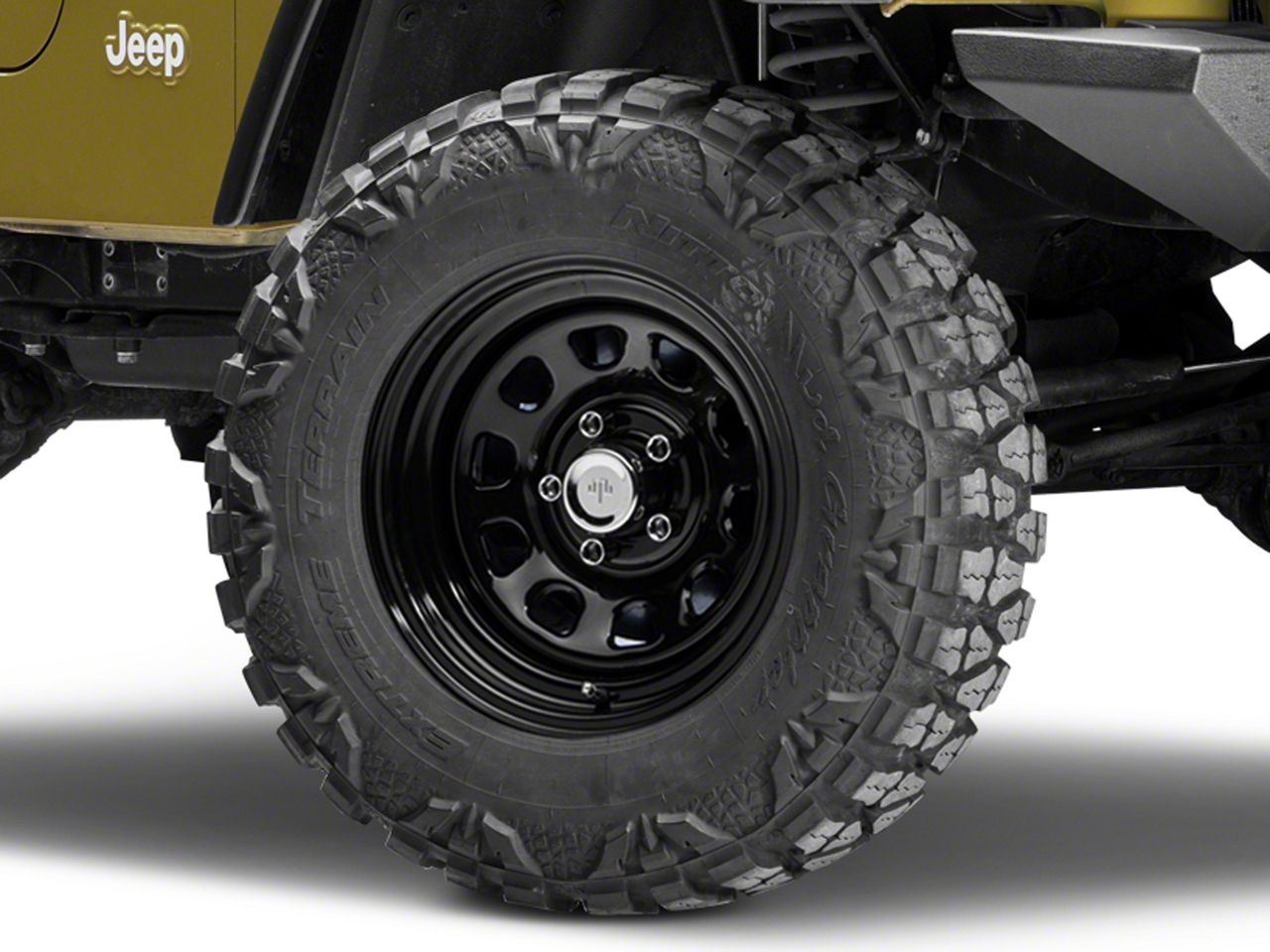 Application: This Mammoth D Window Black Steel Wheel; 15x10, with a backspace of 3.729 Inch and bolt pattern of 5 x 114.3mm (5 x 4.5-Inch), ensures driving stability and optimal alignment. Designed to fit 2097-2006 Jeep Wrangler TJ, it is a perfect match for those seeking a blend of style and functionality. Sold individually.