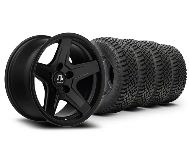 Mounted and Balanced Wheel and Tire Kit. This wheel and tire combo kit features (4) 17x9 Mammoth Boulder Matte Black Wheels and (4) Atturo Trail Blade X/T Multi-Terrain 35x12.50R17 tires that have been put together into an easy to buy kit that arrives to your door already mounted and balanced ready to be installed on your vehicle.
