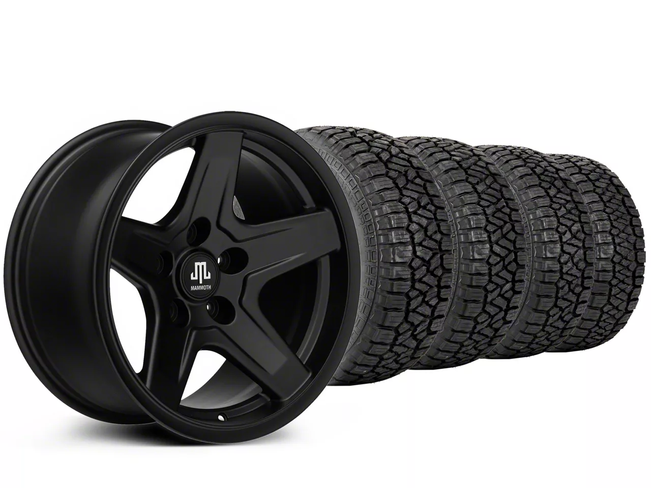 Mounted and Balanced Wheel and Tire Kit. This wheel and tire combo kit features (4) 17x9 Mammoth Boulder Matte Black Wheels and (4) Kenda KLEVER A/T2 KR628 315/70R17 tires that have been put together into an easy to buy kit that arrives to your door already mounted and balanced ready to be installed on your vehicle.