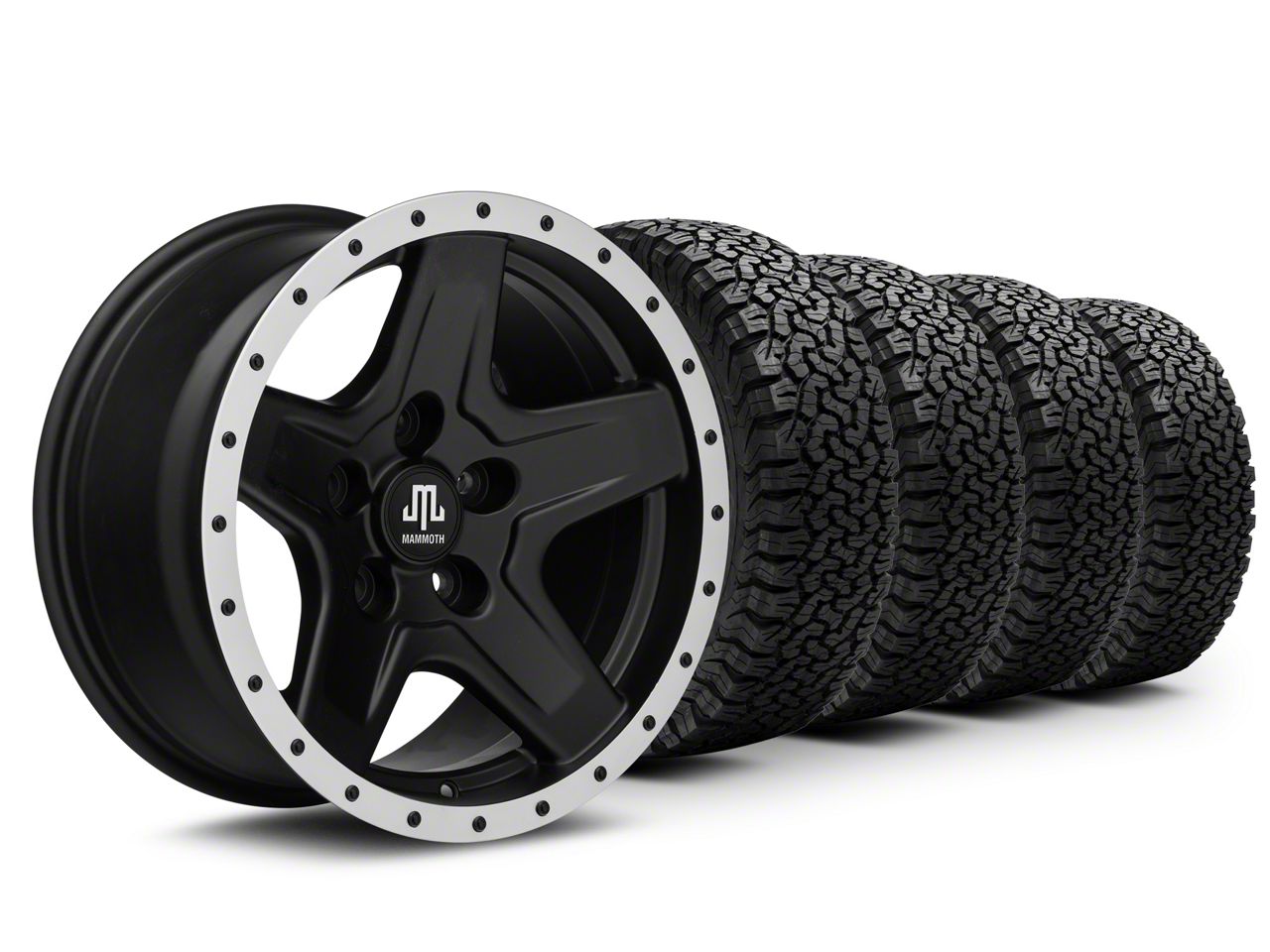 Mounted and Balanced Wheel and Tire Kit. This wheel and tire combo kit features (4) 17x9 Mammoth Boulder Simulated Beadlock Style Black Wheels and (4) BF Goodrich All-Terrain T/A KO 315/70R17 tires that have been put together into an easy to buy kit that arrives to your door already mounted and balanced ready to be installed on your vehicle.