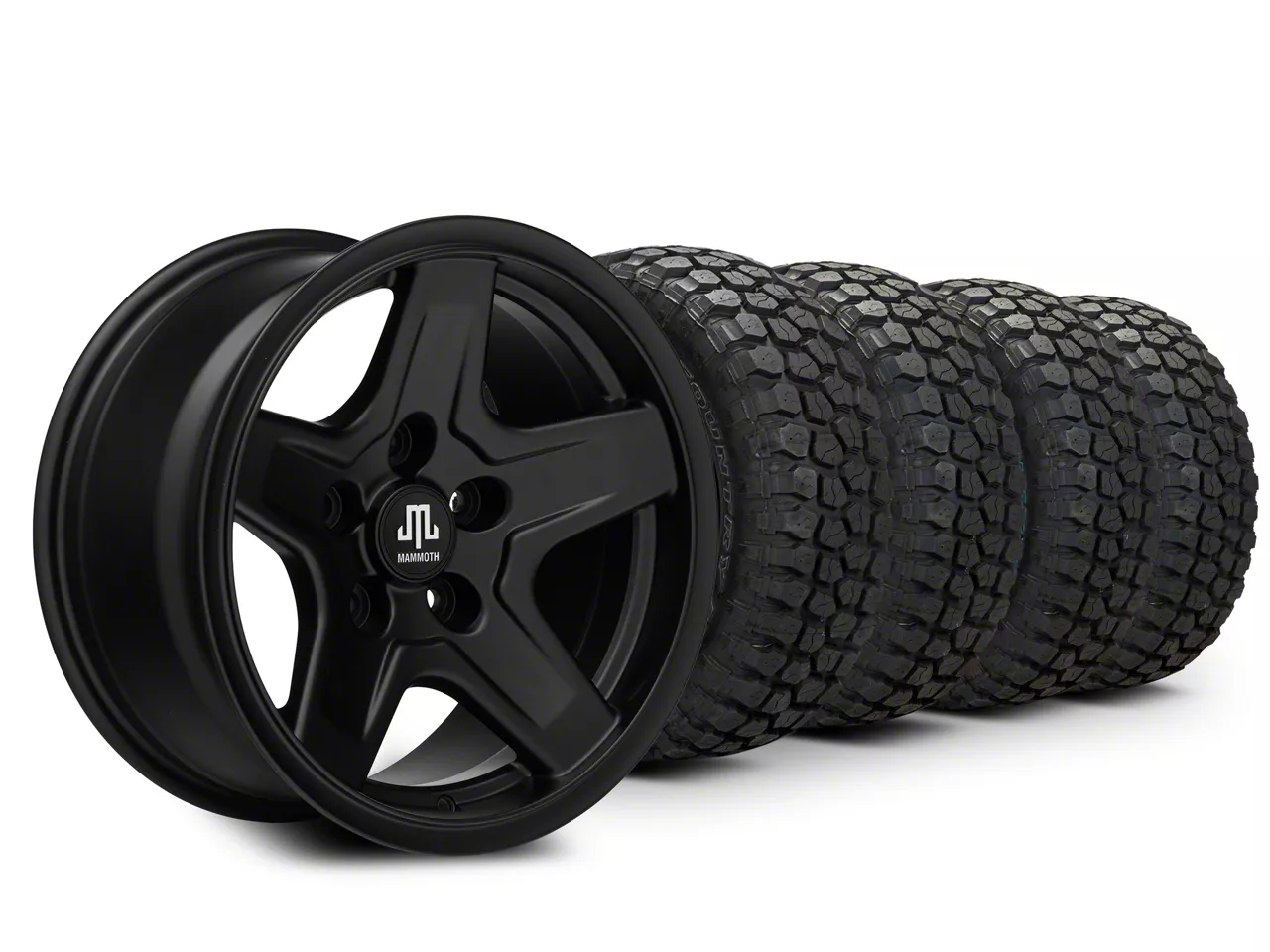 Matte Black Mammoth Boulder Style Aluminum Wheel. Mammoth's Boulder Style Wheel features a bold five spoke design for rugged good looks. This Mammoth Wheel is completed in a high quality, clear coated, matte black finish for an aggressive appearance that can withstand the hazards of everyday driving - including road chips and pitting.
