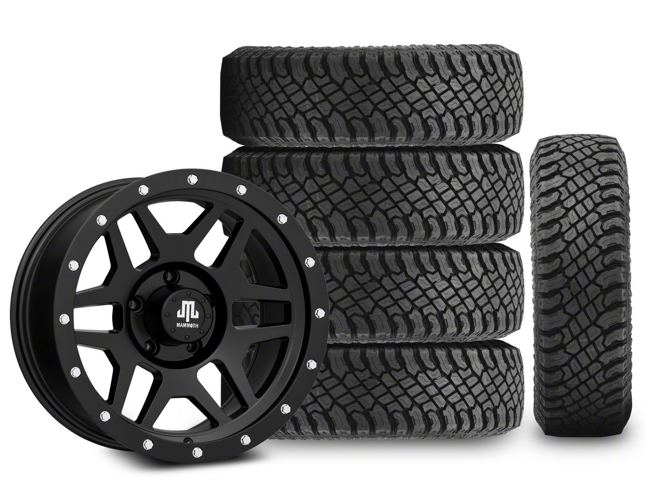 Mounted and Balanced Wheel and Tire Kit. This wheel and tire combo kit features (5) 17x9 Mammoth Split 6 Simulated Beadlock Matte Black Wheels and (5) Atturo All-Terrain Trail Blade X/T 285/70R17 tires that have been put together into an easy to buy kit that arrives to your door already mounted and balanced ready to be installed on your vehicle.