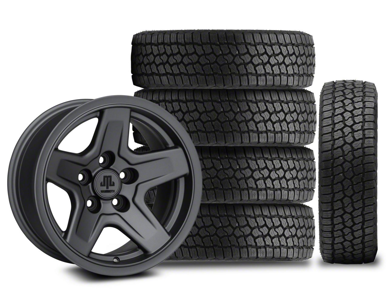 Mounted and Balanced Wheel and Tire Kit. This wheel and tire combo kit features (5) 17x9 Mammoth Boulder Charcoal Wheels and (5) Milestar All-Terrain Patagonia AT/R 285/70R17 tires that have been put together into an easy to buy kit that arrives to your door already mounted and balanced ready to be installed on your vehicle.