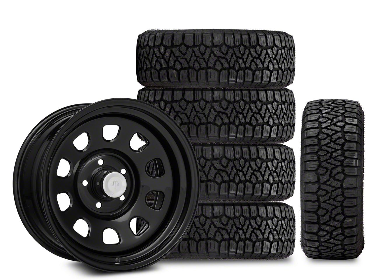 Mounted and Balanced Wheel and Tire Kit. This wheel and tire combo kit features (5) 17x9 Mammoth D Window Black Steel Wheels and (5) Kenda All-Terrain KLEVER A/T2 KR628 285/70R17 tires that have been put together into an easy to buy kit that arrives to your door already mounted and balanced ready to be installed on your vehicle.