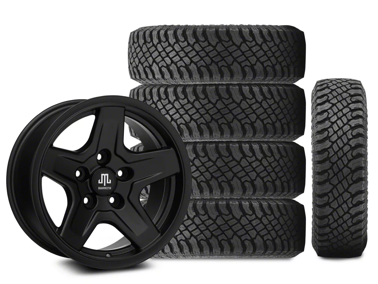 Matte Black Mammoth Boulder Style Aluminum Wheel. Mammoth's Boulder Style Wheel features a bold five spoke design for rugged good looks. This Mammoth Wheel is completed in a high quality, clear coated, matte black finish for an aggressive appearance that can withstand the hazards of everyday driving - including road chips and pitting.