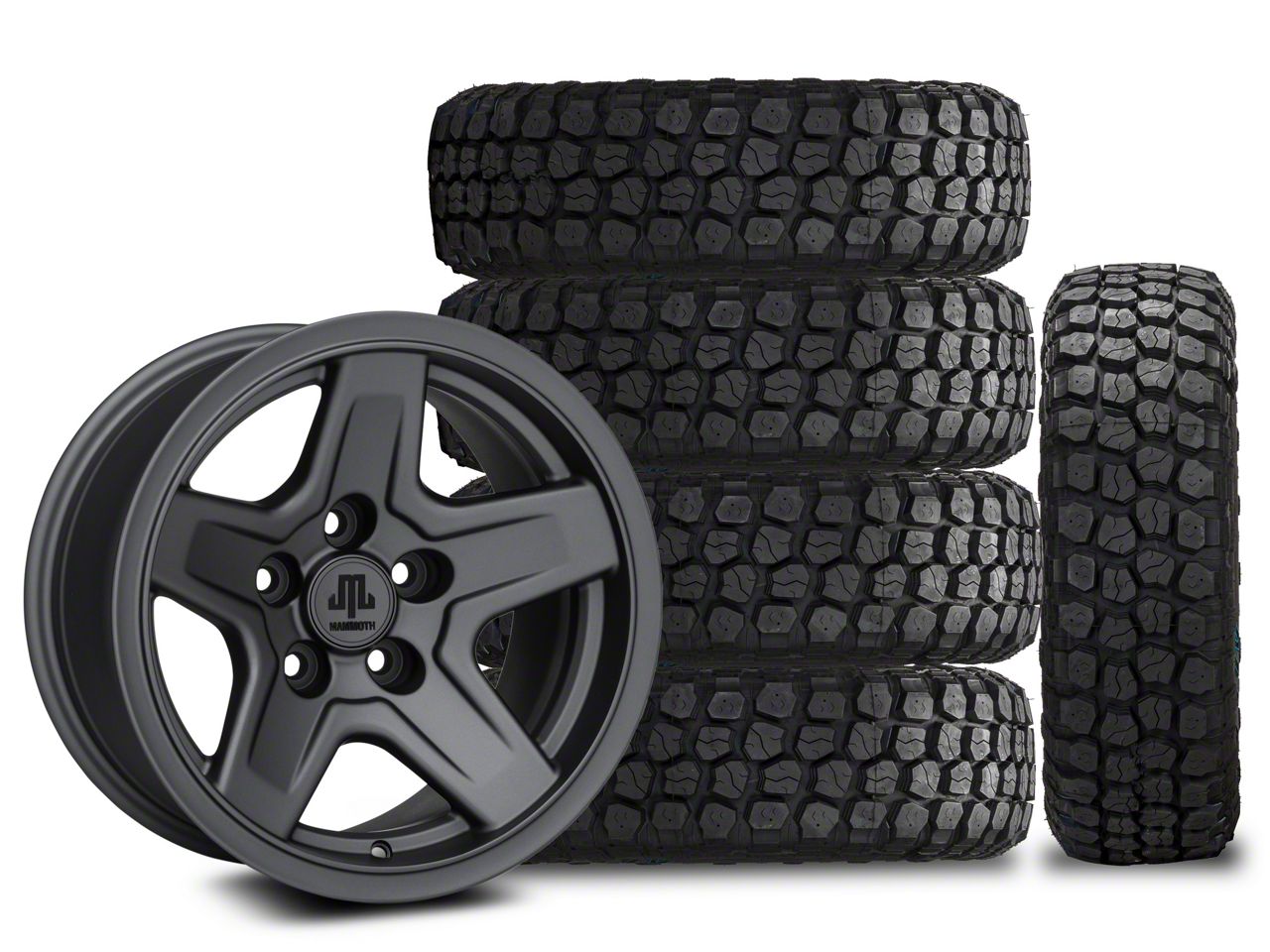 Mounted and Balanced Wheel and Tire Kit. This wheel and tire combo kit features (5) 17x9 Mammoth Boulder Charcoal Wheels and (5) Ironman Mud-Terrain All Country 285/70R17 tires that have been put together into an easy to buy kit that arrives to your door already mounted and balanced ready to be installed on your vehicle.