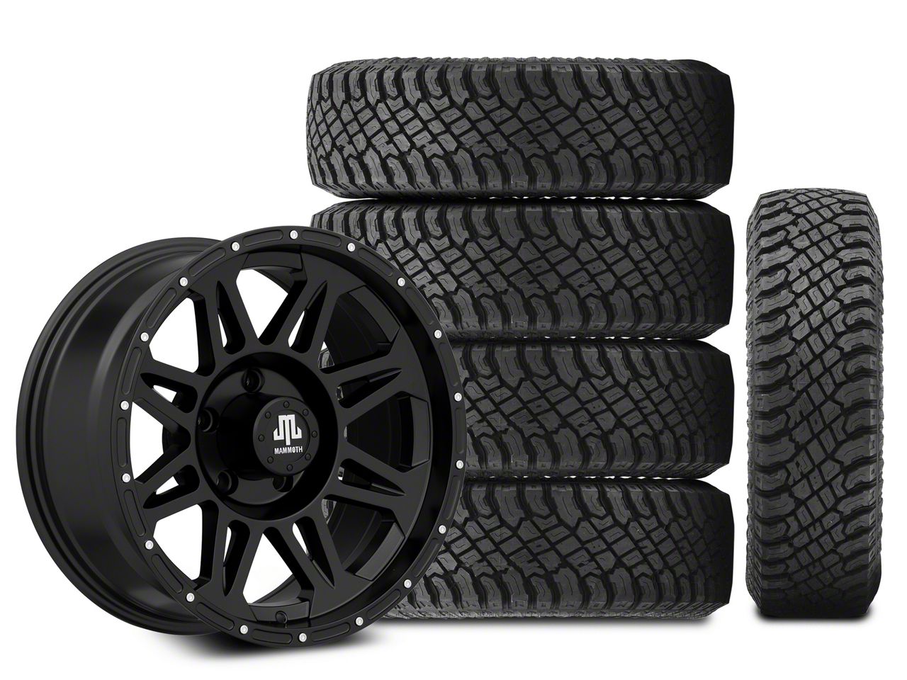 Matte Black Mammoth Split 8 Beadlock Wheel. Mammoth's Split 8 Beadlock Wheel features a military inspired split 8-spoke design with simulated bead lock bolts around the lip for rugged good looks. This Wheel is completed in a high quality, clear coated, matte black finish for an aggressive appearance that can withstand the hazards of everyday driving - including road chips and pitting.