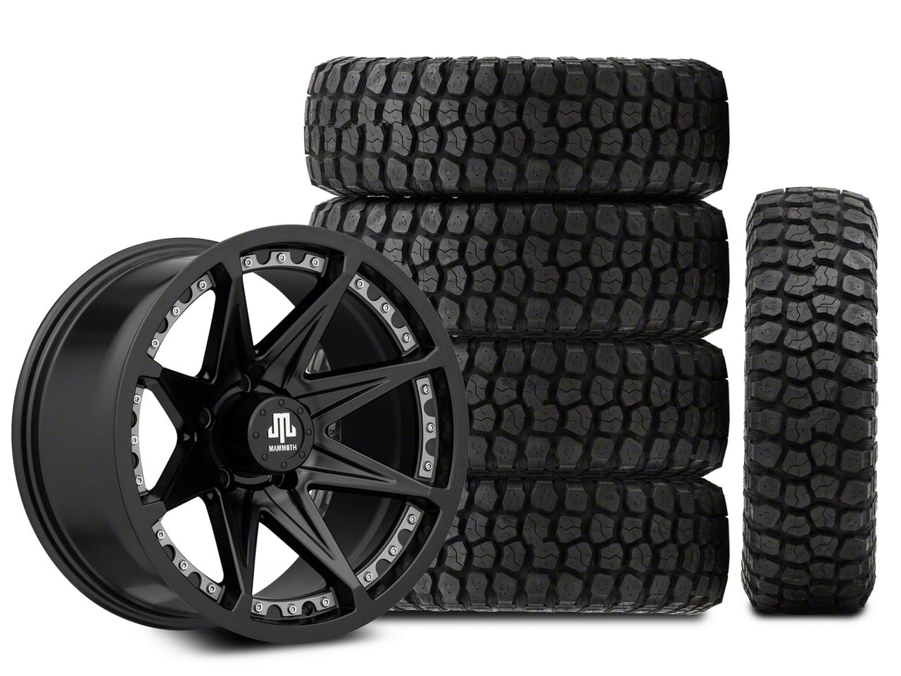 Mounted and Balanced Wheel and Tire Kit. This wheel and tire combo kit features (5) 17x9 Type 88 Matte Black Wheels and (5) Ironman Mud-Terrain All Country 35x12.50R17 tires that have been put together into an easy to buy kit that arrives to your door already mounted and balanced ready to be installed on your vehicle.