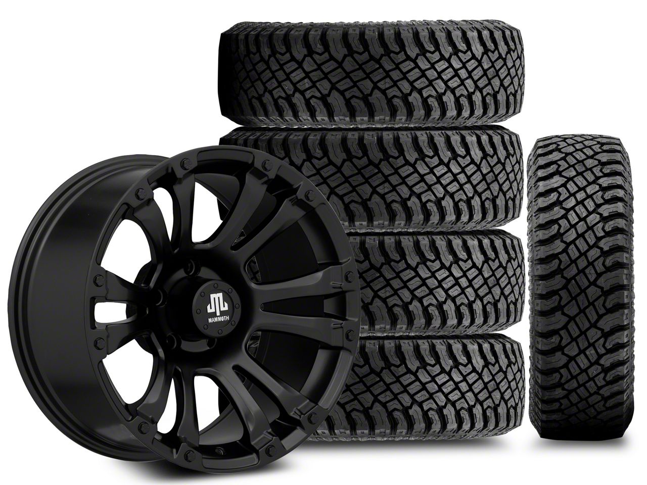Mounted and Balanced Wheel and Tire Kit. This wheel and tire combo kit features (5) 18x9 Mammoth Madness Matte Black Wheels and (5) Atturo All-Terrain Trail Blade X/T 275/70R18 tires that have been put together into an easy to buy kit that arrives to your door already mounted and balanced ready to be installed on your vehicle.
