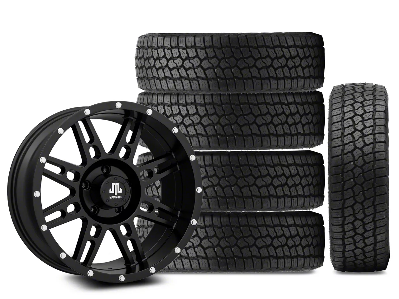 Mounted and Balanced Wheel and Tire Kit. This wheel and tire combo kit features (5) 18x9 Mammoth Vader Simulated Beadlock Matte Black Wheels and (5) Milestar All-Terrain Patagonia AT/R 275/70R18 tires that have been put together into an easy to buy kit that arrives to your door already mounted and balanced ready to be installed on your vehicle.