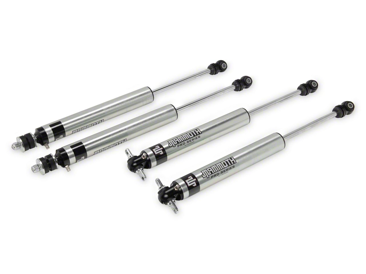 Improves Handling Performance. These Mammoth Pro-Series Nitrogen Charged Front and Rear Shocks were designed as a performance upgrade for your JK Wrangler's original shocks. These non-adjustable Shocks were engineered with pre-set damping to improve your Wrangler's handling and ride quality. Mammoth's Pro-Series Nitrogen Charged Shocks are the perfect upgrade for Wrangler's with a 1.50 to 3.50-Inch lift.