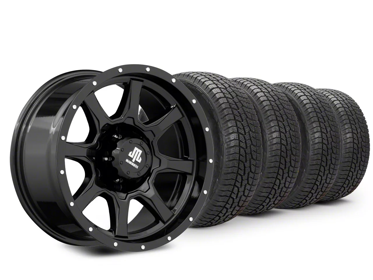 Mounted and Balanced Wheel and Tire Kit. This wheel and tire combo kit features (4) 16x8 Mammoth High Roller Gloss Black 6-Lug Wheels and (4) West Lake SL369 All-Terrain 265/75R16 tires that have been put together into an easy to buy kit that arrives to your door already mounted and balanced ready to be installed on your vehicle.