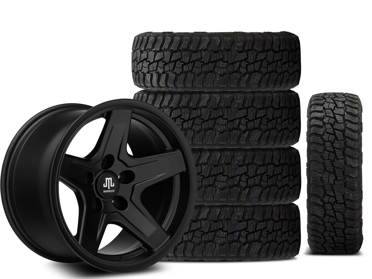 Mounted and Balanced Wheel and Tire Kit. This wheel and tire combo kit features (5) 17x9 Mammoth Boulder Matte Black Wheels and (5) Mickey Thompson Baja Boss A/T 35" - 35x12.50R17 tires that have been put together into an easy to buy kit that arrives to your door already mounted and balanced ready to be installed on your vehicle.