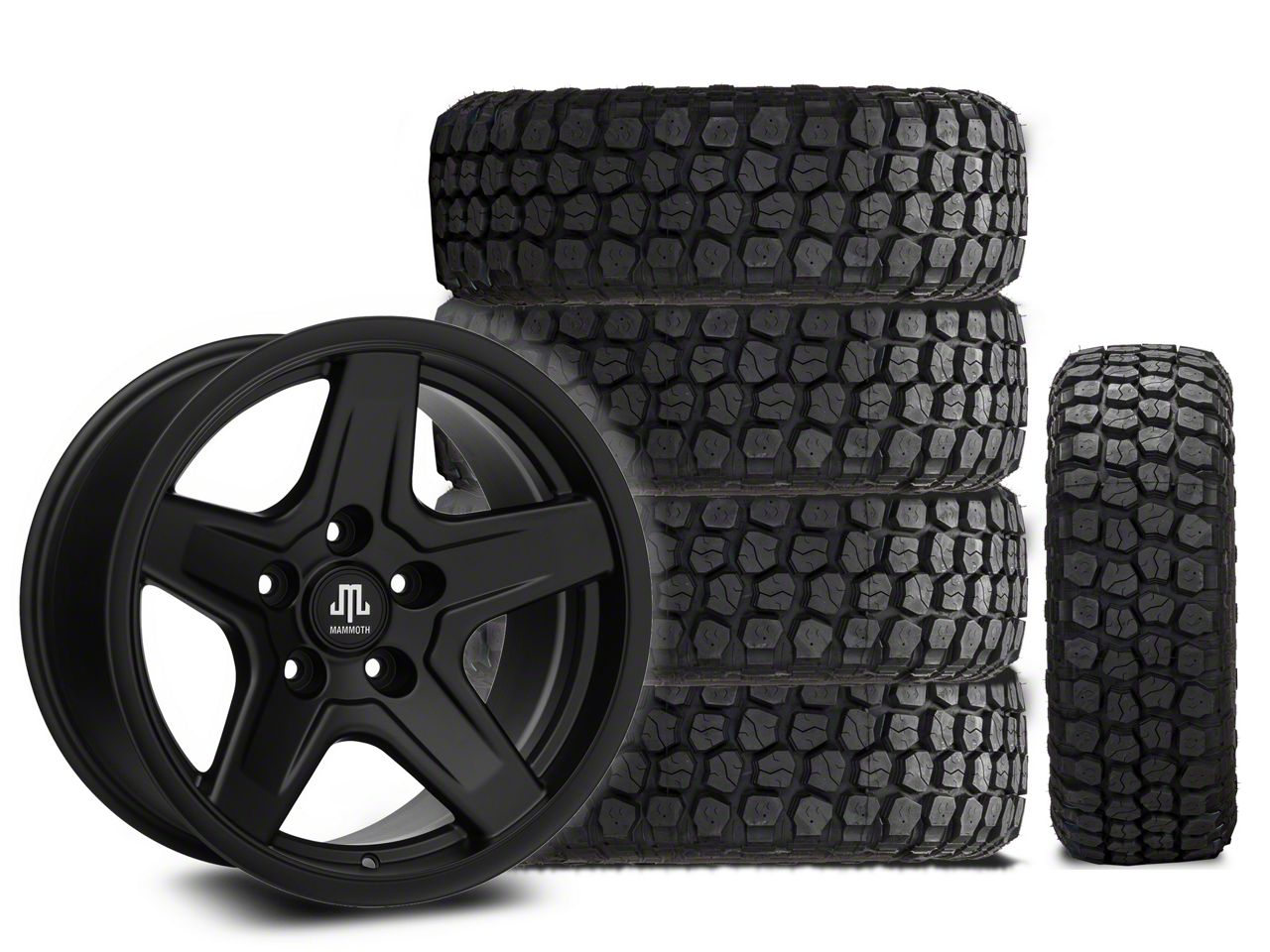 Mounted and Balanced Wheel and Tire Kit. This wheel and tire combo kit features (5) 17x9 Mammoth Boulder Matte Black Wheels and (5) Ironman All Country Mud-Terrain 285/70R17 tires that have been put together into an easy to buy kit that arrives to your door already mounted and balanced ready to be installed on your vehicle.