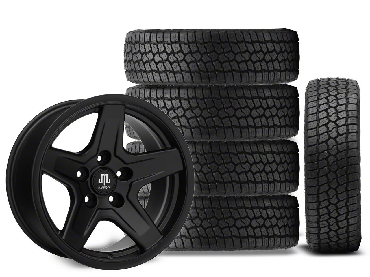 Application. This Mammoth Boulder Matte Black; 17x9 and Milestar Patagonia AT/R All-Terrain; Set of 5 is designed to fit 2018-2026 Jeep Wrangler JL models.