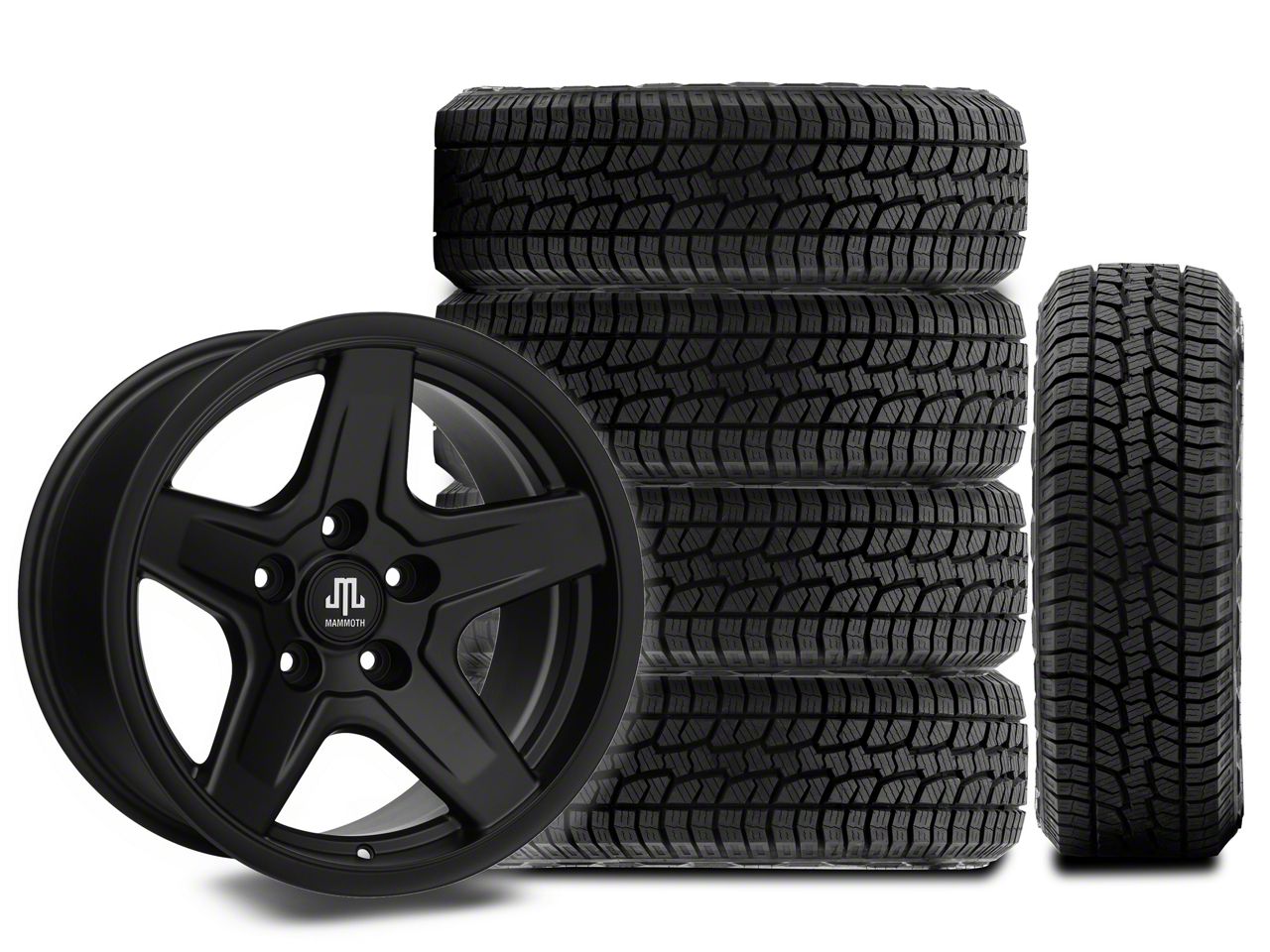 Application. This Mammoth Boulder Matte Black; 17x9 and West Lake SL369 All-Terrain; Set of 5 is designed to fit 2007-2018 Jeep Wrangler JK models.