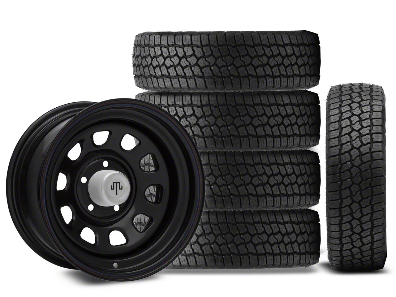 Application. This Mammoth D Window Black Wagon Wheel Edition Steel; 15x8 and Milestar Patagonia AT/R All-Terrain; Set of 5 is designed to fit 1997-2006 Jeep Wrangler TJ models.