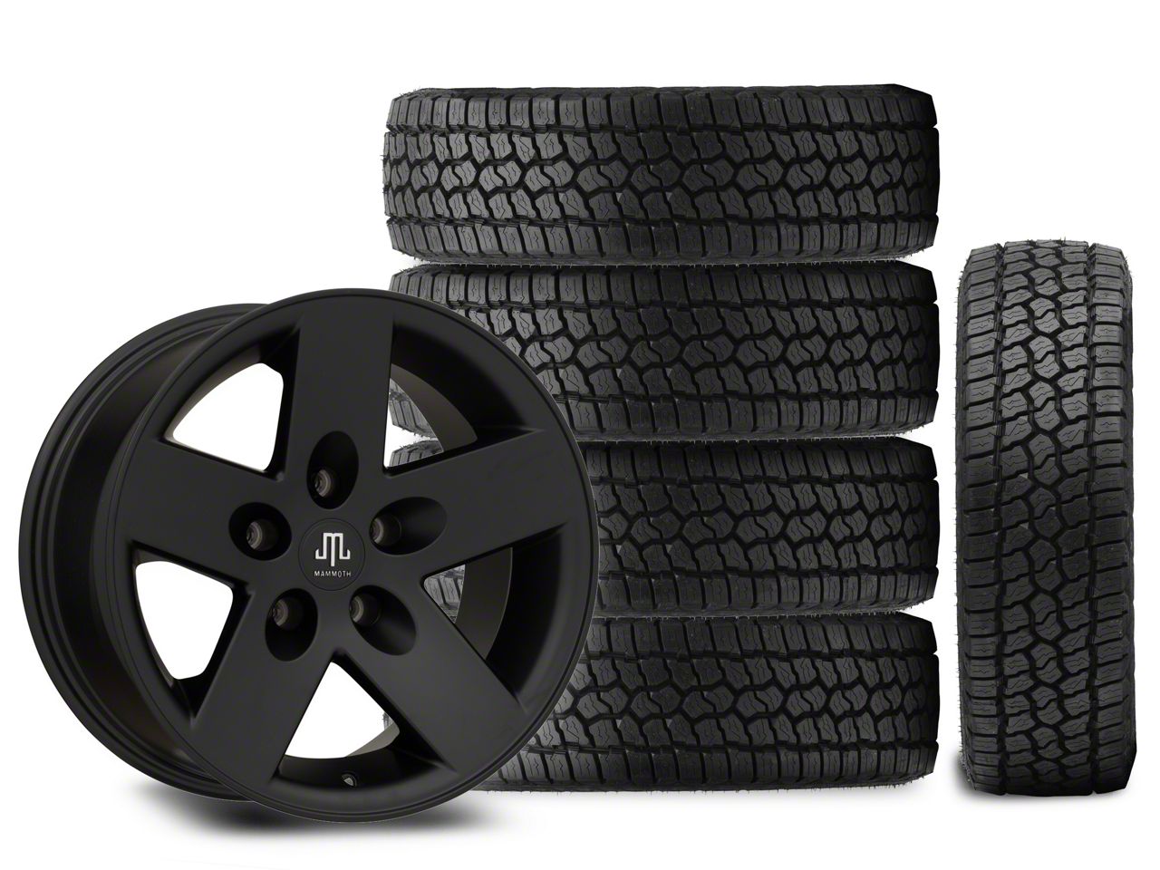 Application. This Mammoth Moab Black; 17x9 and Milestar Patagonia AT/R All-Terrain; Set of 5 is designed to fit 2007-2018 Jeep Wrangler JK models.
