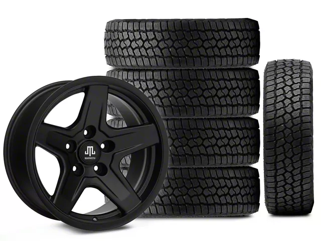 Mounted and Balanced Wheel and Tire Kit. This wheel and tire combo kit features (5) 17x9 Mammoth Boulder Matte Black Wheels and (5) Milestar Patagonia AT/R All-Terrain 285/70R17 tires that have been put together into an easy to buy kit that arrives to your door already mounted and balanced ready to be installed on your vehicle.