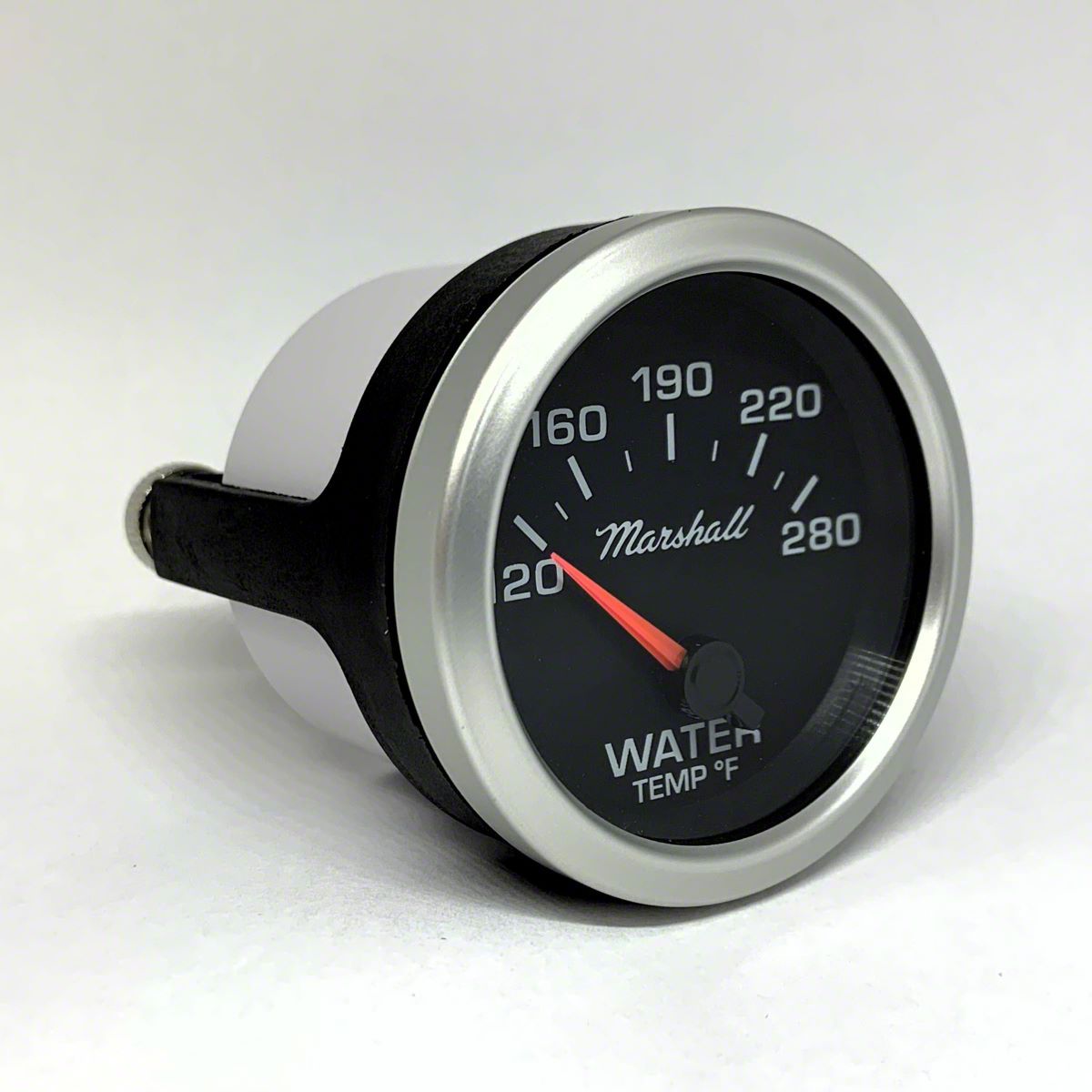 Premium Water Temperature Gauge. The Marshall Instruments COMP II LED Black Dial 2-1/16-Inch Water Temperature Gauge; 120-280 Fahrenheit; Silver Aluminum Bezel is designed to provide accurate and reliable temperature readings for automotive water systems. It allows vehicle owners and tuners to monitor engine temperature precisely, preventing overheating and ensuring optimal performance. The gauge's illuminated pointer and LED backlight make it easy to read in all lighting conditions, especially at night.