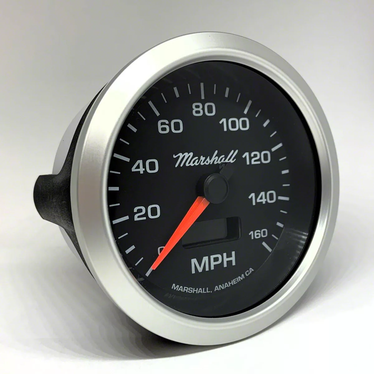 Programmable Speedo FeaturesMarshall in-dash speedometers come in 3-3/8" and 5" sizes and a variety of dial colors and bezel options.Marshall speedometers feature two trip meters and an odometer (miles). Marshall speedometers come precalibrated for 16,000 pulses per mile and can be recalibrated at any time for 4,000 - 200,000 pulses per mile using the included trip/calibration button. Calibration is as easy as pressing the included calibration button and driving one measured mile.Marshall electronic speedometers work with hall effect senders, GPS senders and magnetic pickup sensors (VSS). Any speed sender or electronic module that meets the following conditions can be used with our speedo:Pulse range generated proportional to the vehicle speedSignal with minimum 3V peak to peak signal - typical for 3-wire hall effect and 2 wire vehicle speed sensor outputs4000-200,000 pulses per mile (16,000 is typical).Marshall performance in-dash speedometers and tachometers feature high-speed stepper motor movement, LED through-the-dial lighting, red illuminated pointer, and easy-install u-clamp.Made in the U.S.A.This product is proudly made in Anaheim, California USA.Through-Dial LED LightingMarshall gauges feature through-the-dial LED lighting and glowing 3D pointer for a cool look and easy viewing at night.