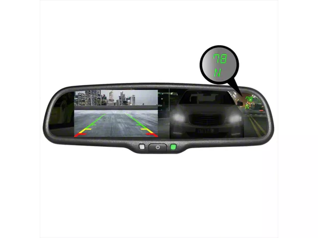 Quality Construction. This LCD rearview mirror has a dual video input, and the mirror itself is clear, distortion-free, and has 4mm-thick glass. In addition, this mirror also includes a built-in compass and temperature gauge, allowing you to easily monitor your vehicle's direction and temperature at all times.