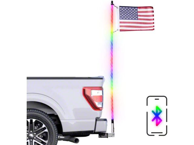 Chasing Rainbow Spiral. Made for a universal fit, this Master Tailgaters LED Flag Pole adds a cool and colorful upgrade to your ride. Sized 6-foot tall, this flag pole has a stylish lit-up LED chasing rainbow spiral on its length that draws people’s attention.