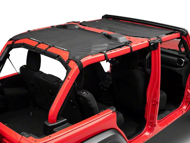 Application. This MasterTop ShadeMaker™ Freedom Mesh Bimini Top Plus in Black fits 2018-2023 4-door models of the Jeep Wrangler JL.