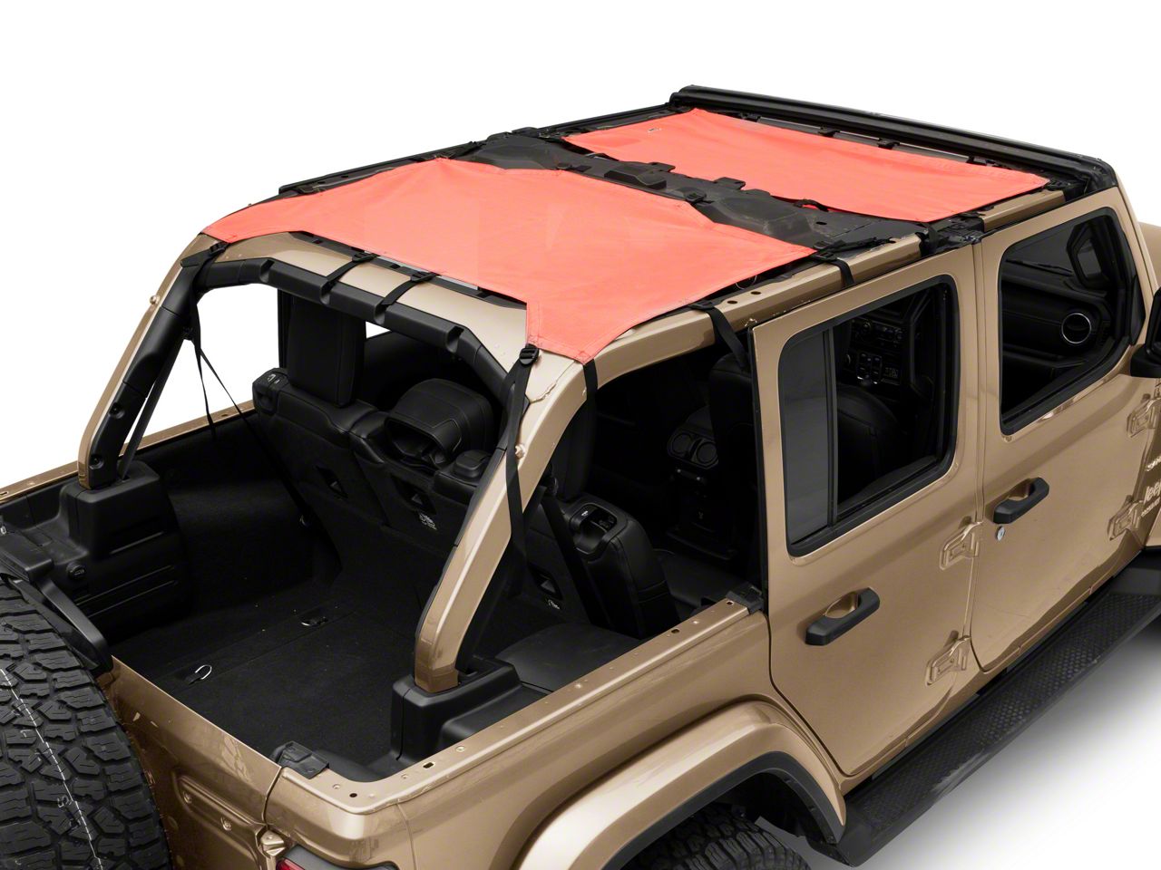 Application. This MasterTop ShadeMaker™ Freedom Mesh Bimini Top Plus; Red can be installed on 2018-2023 4-door models of the Jeep Wrangler JL.