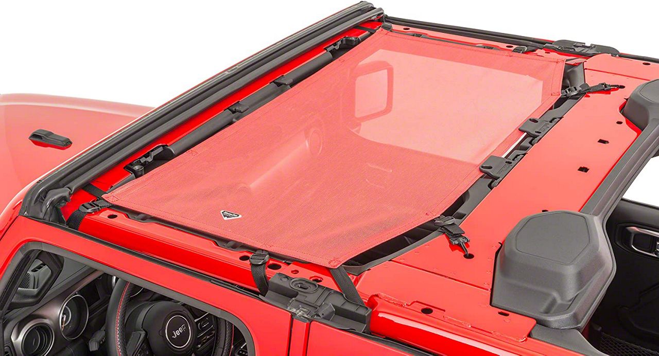 Application. This Red MasterTop ShadeMaker Freedom Mesh Bimini Top fits all 2018-2023 Jeep Wrangler JL models.