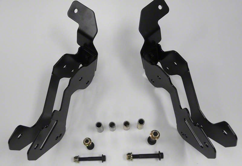 Maximus-3 Front Control Arms Geometry Correction Brackets dramatically improve handling performance and overall ride quality as well as improve steering feel and control, both on and off paved roads. These brackets correct caster angle and reduce front driveshaft operating angle by re-positioning the front control arms at the chassis end such that they operate within a corrected angle and geometrical arrangement. This easy to install solution is designed to work with any conventional 3” - 4.5” aftermarket suspension lifts and it eliminates the need for adjustable control arms.