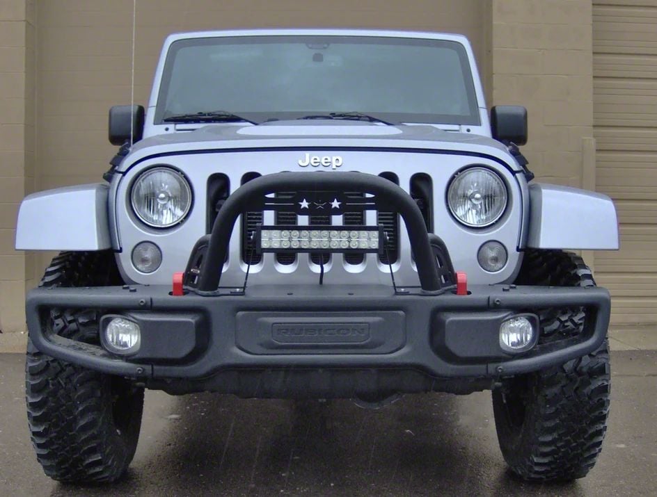 Off-Road Protection With Aggressive Styling. The Maximus-3 Hard Rock Stinger Bar with Stars adds serious off-road style and front-end protection to your Jeep Wrangler JK. Designed to mount to the factory Rubicon Hard Rock steel bumper, this stinger bar offers enhanced safety on steep inclines while providing an aggressive trail-ready appearance.