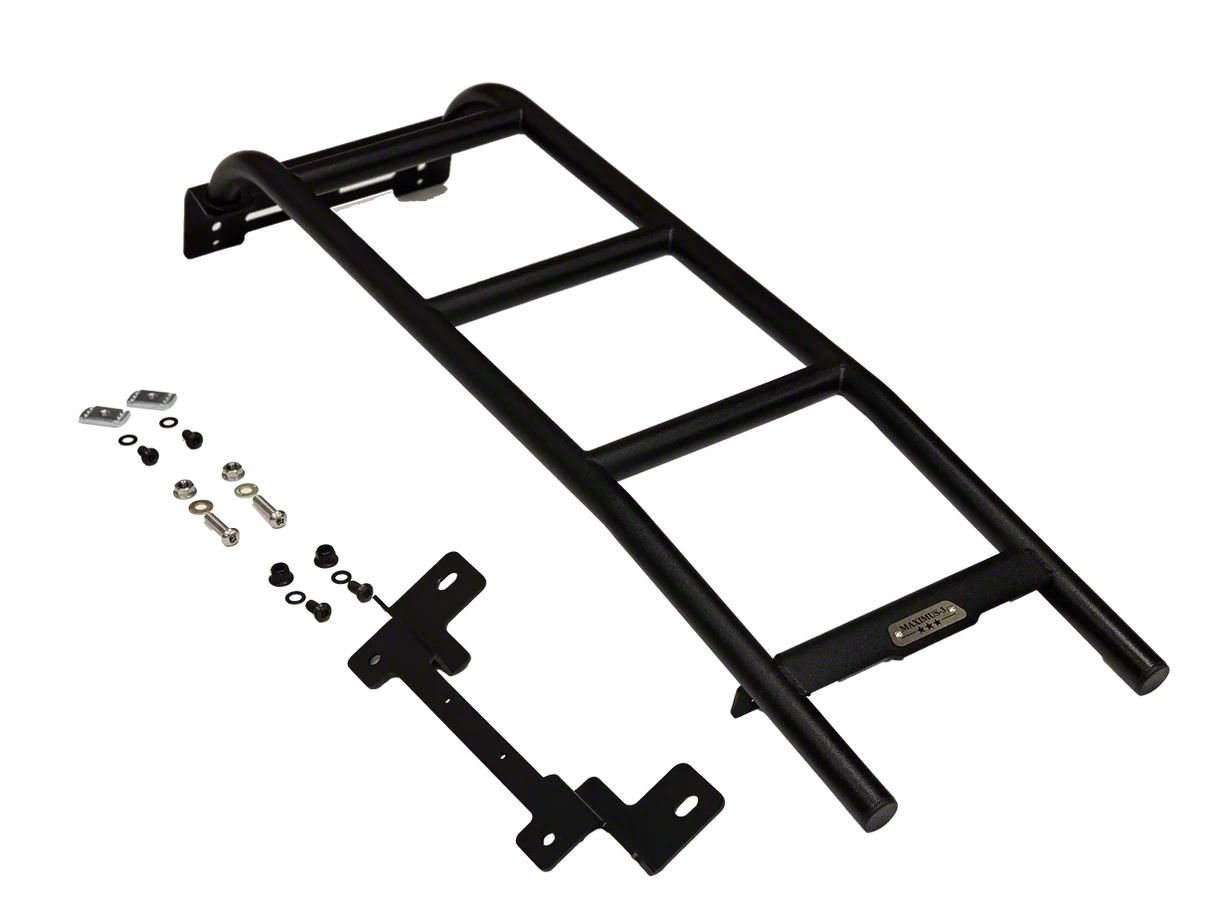 Functional Roof Access. The Maximus-3 Roof Rack Side Ladder for Gen 2 Pioneer Platform; Textured Black is designed to facilitate easy loading, unloading, and climbing on or off the roof rack. This ladder enhances the convenience and safety of accessing gear stored on the rack, making it essential for off-road and overland enthusiasts.