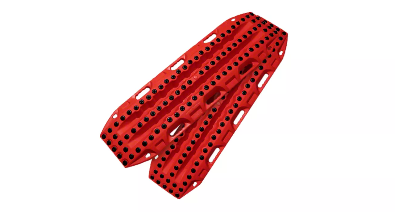 Enhanced Traction and UV Resistance. Featuring interchangeable alloy teeth, these boards provide superior grip, helping to prevent wheel spin and ensure reliable recovery. The UV-stabilized FJ Red color resists fading from sun exposure, maintaining their bold appearance over time.