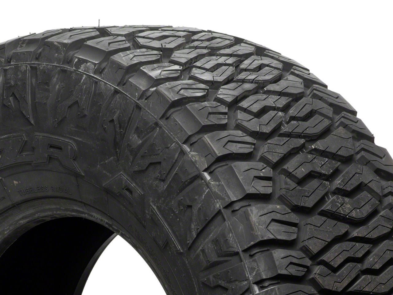 Made for All Terrains. Introducing the Maxxis Razr A/T Tire (37x12.50R17), the best all-terrain tire for adventurers seeking unparalleled performance on and off the road. Featuring 3D tread blocks and bridge reinforcements, this tire delivers reduced pattern noise and prevents irregular wear. Its armor sidewall design ensures superior traction and puncture resistance, giving you the confidence to tackle any terrain. It is also M+S/Mountain Snowflake (3PMSF)-certified, ensuring optimal performance in all conditions.