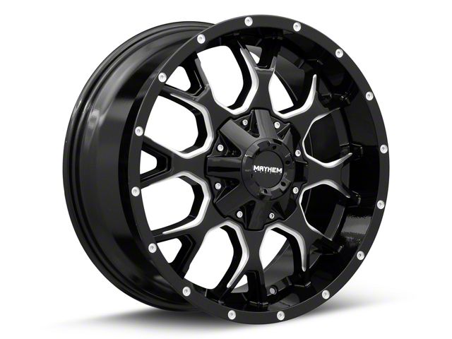 The 18x9 Mayhem Wheels Warrior Gloss Black Milled Wheel is completed in a high-quality gloss black finish with steel milled accents that will be the envy of everyone. For added protection and good looks, there is a durable clear coat that withstands the rigors of everyday driving,
