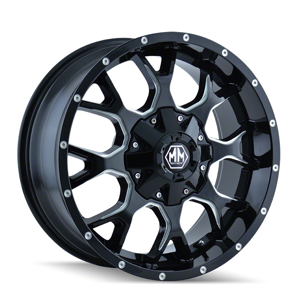 Application. This Mayhem Wheels Warrior Gloss Black Milled 6-Lug Wheel; 20x9; 0mm Offset, with a backspacing of 5 Inch, 127mm and a bolt pattern of 6 x 139.7mm (6 x 5.5-Inch), is designed to fit 2017-2024 models. Sold individually.